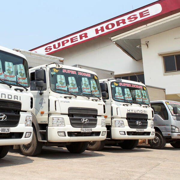 A fleet of trucks to deliver our Super Horse Energy Drink to you.